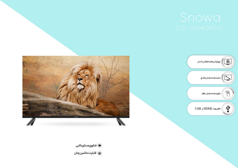تلویزیون اسنوا مدل SLD-55SA1260UL در کیفیت تصویر حرفهای زیادی در بازار رقابتی تلویزیون دارد. اسنوا در این مدل تمام سعی خود را به کار گرفته و از بهترین کیفیتهای تصویر موجود استفاده کرده است. مدل SLD-55SA1260UL از صفحهنمایش LED باکیفیت UItra HD-4K بهره میبرد که باید گفت در این زمینه قابلرقابت با مدلهای بسیاری است. کنتراست تصاویر در تلویزیونهای ال ای دی بهتر است و تا حدود زیادی تابش نور به صفحه که سبب تیرگی میشود را خنثی میکند. همچنین درجه دقت رنگ در صفحهنمایشهای ال ای دی بالاتر است که همین موضوع باعث میشود تا تصاویری که رنگبندیهای زیادی را دارد بهصورت دقیق و شفاف نشان دهد. از دیگر مزایای این نوع تکنولوژی میتوان به ایجاد اندازه بزرگتر برای مانیتور، طول عمر بیشتر و صرفهجویی در مصرف انرژی اشاره کرد. نکته مثبت دیگر این تلویزیون آن است که قابلیت ارتقا کیفیت صفحهنمایش در آن وجود دارد. صفحهنمایش این مدل تخت است که همین ویژگی باعث میشود تا در مورد نصب آن راحتتر تصمیم بگیرید چرا که هم میتوانید آن را روی میز قرار دهید یا آنکه به وسیله پایههای قوی به دیوار بچسبانید. همچنین صفحهنمایشهای 4K قابلیت تقریباً جدید است که این روزها در تلویزیونهای بسیار بزرگ دیده میشود. رزولوشن و کیفیت تصویر آن به طرز باورنکردنی عالی است و تمام اجسام داخل آن به صورت کاملاً واقعی نمایش داده میشود. تلویزیونهای 4K دارای تراکم پیکسلی 4096 در 2160 و وضوح تصویر چهار برابر بهتر از Full HD است.